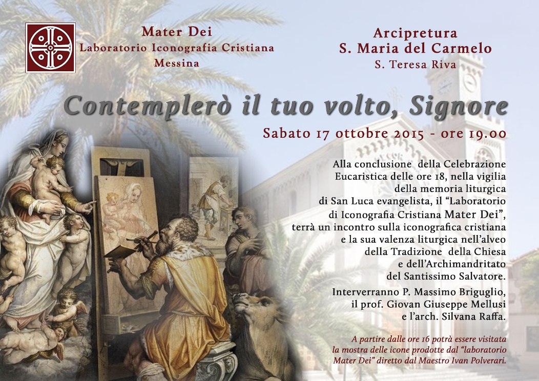 S. Teresa. Si svolgerà sabato 17 ottobre alle ore 19 , presso la Chiesa S. Maria del Carmelo di S. Teresa Riva, l’apertura delle attività culturali 2015/2016 del “Laboratorio di Iconografia Cristiana Mater Dei” di Messina. Alla conclusione della Celebrazione Eucaristica delle ore 18, nella vigilia della memoria liturgica di San Luca evangelista, il laboratorio terrà un incontro sulla iconografica cristiana e la sua valenza liturgica nell’alveo della Tradizione della Chiesa e dell’Archimandritato del Santissimo Salvatore. Interverranno Padre Massimo Briguglio, Giovan Giuseppe Mellusi e Silvana Raffa. A partire dalle ore 16 potrà essere visitata la mostra delle icone prodotte dal “laboratorio Mater Dei” diretto dal Maestro Ivan Polverari di Roma. Il Laboratorio nasce dal desiderio di promuovere e diffondere la conoscenza della tradizione iconografica e del patrimonio artistico e spirituale della nostra cultura cristiano-bizantina, favorendo innanzitutto il dialogo ecumenico inteso come condivisione di esperienze e la realizzazione di icone dipinte secondo moduli teologici e tecnici propri, facendo uso di tecniche e materiali rigorosamente tradizionali e naturali: tavole in legno gessate, pigmenti naturali amalgamati con emulsione al tuorlo d’uovo e foglia oro. Il Laboratorio Mater Dei si propone di raggiungere tali obiettivi attraverso: Corsi di iconografia a vari livelli; approfondimenti teologici; Percorsi di Storia dell’Arte; allestimenti di mostre; seminari e convegni; visite guidate presso Chiese e Musei per far conoscere e valorizzare il patrimonio di icone presente a Messina e in Sicilia.
