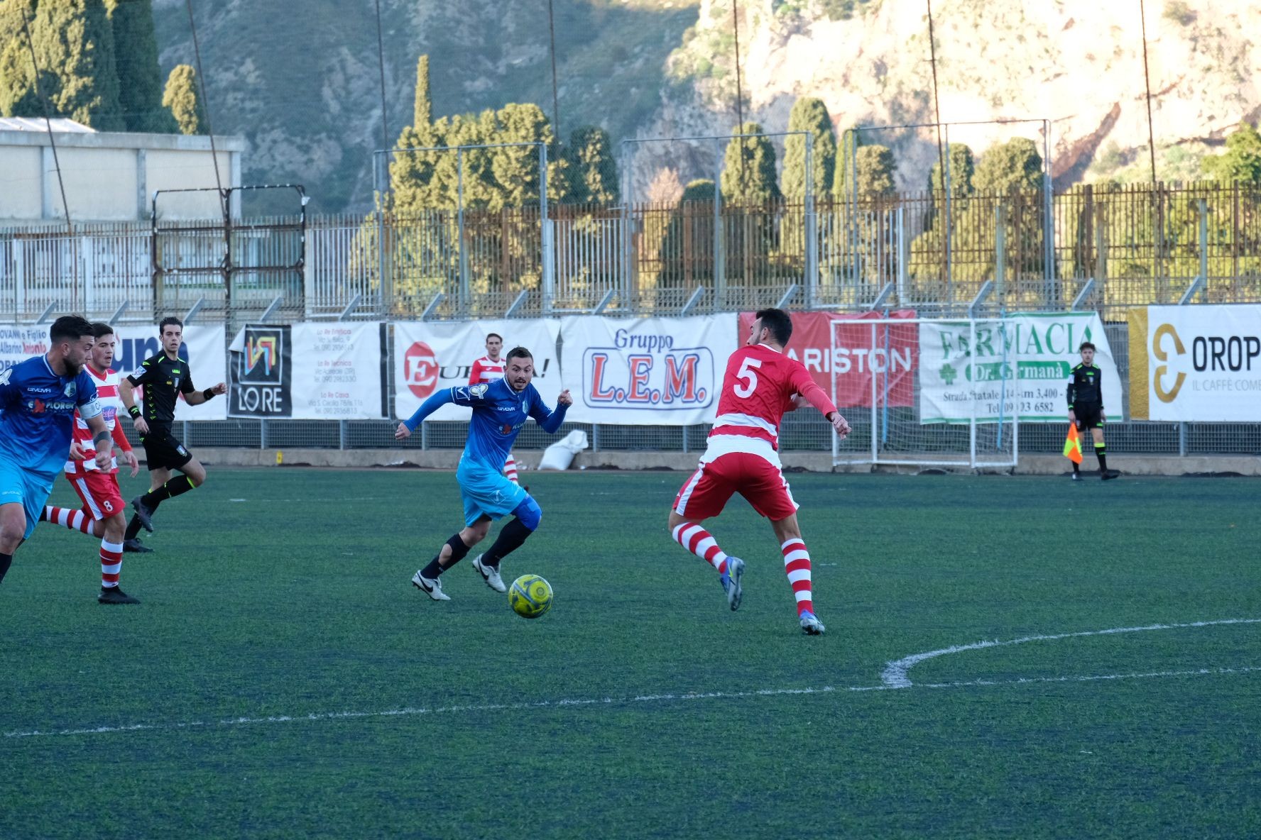 Primo tempo: Gara ostica sin dalle prime battute per il Città di Taormina che al 10’ crea quella che sarà la più grossa occasione della gara: Petrullo pesca Famà sul filo del fuorigioco, palla dentro per Genovese che da due passi con la porta vuota non trova l’impatto con la sfera. Al 23’ l’altra grande chance del primo tempo capita a Urso, il cui destro a giro dal limite sfiora solo il palo. Real Siracusa Belvedere pericoloso, invece, con un colpo di testa impreciso di Ferraguto, mentre al 40’ Famà calcia al volo con il sinistro da dentro l’area, ma Aglianò blocca. In chiusura, su azione d’angolo, Trovato non trova la deviazione vincente, con la palla deviata da un avversario che si perde di poco fuori.