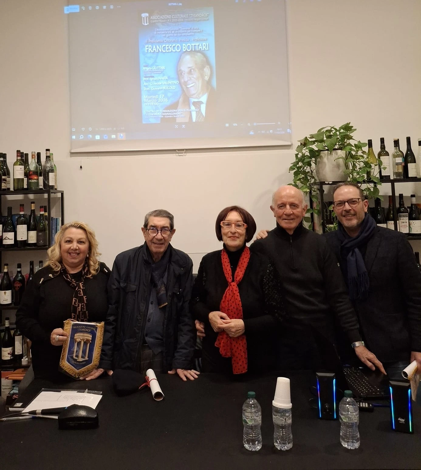Giardini. L’associazione culturale Tysandros di Giardini ha voluto onorare la memoria del preside Francesco Bottari, presidente onorario dell’associazione, nel giorno del 99⁰ compleanno e a due mesi dalla sua dipartita. Lo hanno ricordato, davanti a un attento pubblico, in occasione di una particolare cerimonia: Angela Giuttari, Ignazio Vasta, Giuseppe Valentino e Giovanni Bucolo. Tutti loro hanno ripercorso la lunga vita del preside, caratterizzata dalla passione per la cultura e per l’amore verso Giardini Naxos.