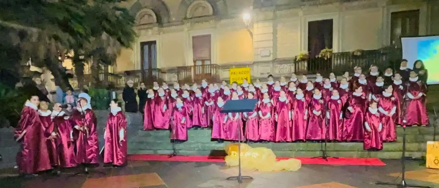 Misterbianco. Una Piazza Mazzini gremita, di cittadini, famiglie e studenti, accorsi per celebrare insieme l’atmosfera natalizia attraverso note gospel, spiritual e swing che hanno fatto da cornice al Concerto di Natale dell’Istituto Leonardo da Vinci di Misterbianco, tenutosi mercoledì 17 dicembre. L’evento, articolato in due momenti musicali (Armonie sotto le stelle e GospelSpiritualSwing – Note di magia) ha incantato il pubblico con esibizioni corali e strumentali curate dagli studenti e dai docenti dell’istituto, attraverso performance intense, vibranti e profondamente sentite.