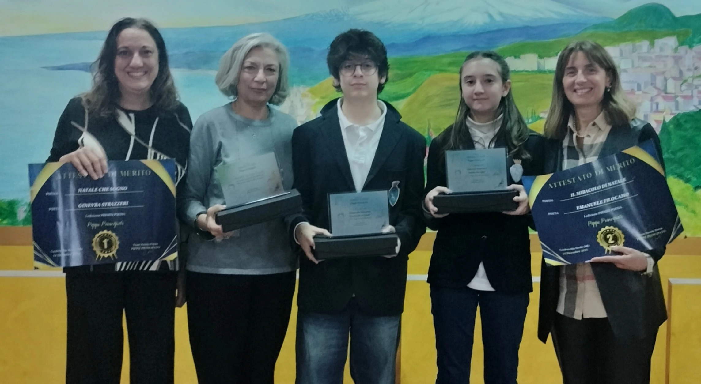 Gli studenti sono stati accompagnati alla cerimonia dai rispettivi genitori e dai docenti Messina Rita, Muscolino Elsa, Managò Marcella, Occhino Filippa e Barbieri Maria. Gli interventi di Maria Ausilia e Salvatore Principato, figli di Pippo Principato, hanno reso omaggio alla figura del professore, ricordando il suo impegno educativo e il profondo amore per la poesia. E’ stata una occasione preziosa per sostenere i giovani poeti, valorizzare il loro talento e celebrare insieme la poesia, la memoria e lo spirito del Natale.