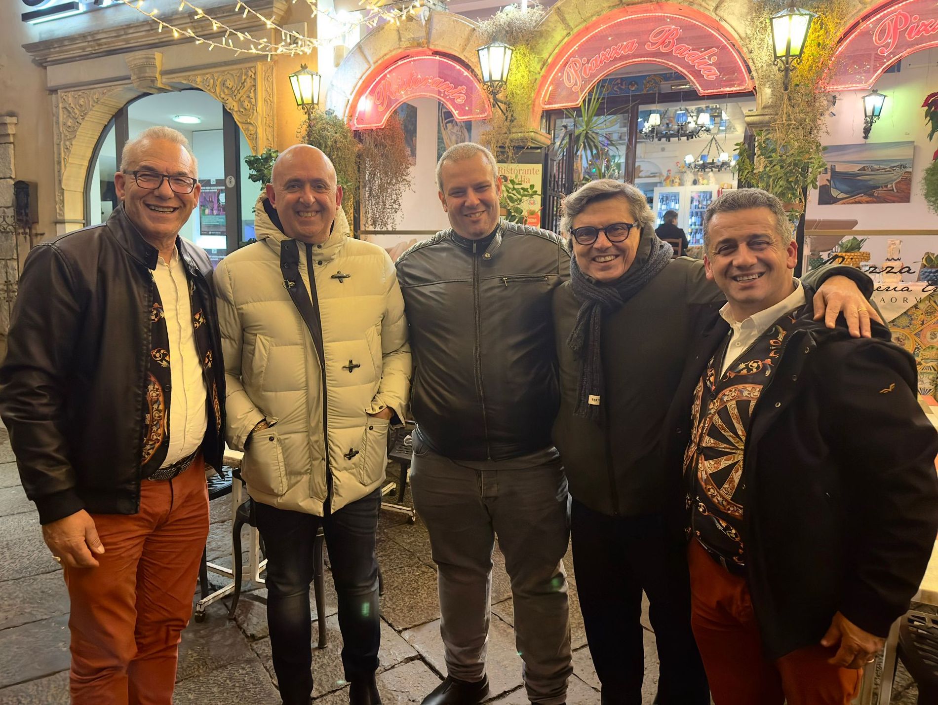 A fine serata, Salvo La Rosa e Sasà Salvaggio, insieme ai “Suonatori di Taormina”, sono stati a cena all’Osteria Villa Zuccaro di Giorgio Di Pasquale, per gustare le pietanze preparate dallo chef Marco Scimone.