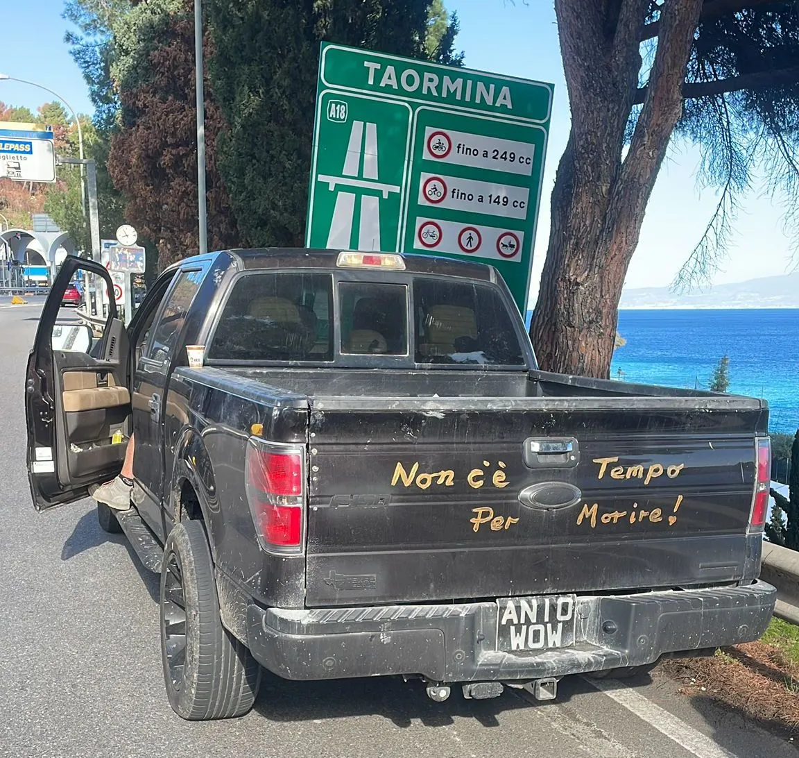 Taormina. È stato uno degli ausiliari del traffico dell’Asm Taormina a segnalare alla Polizia locale la presenza, nel centro storico taorminese, di uno strano pick up con targhe straniere che da giorni circolava nel territorio violando le norme sulla circolazione stradale. Grazie alla segnalazione del giovane ausiliare del traffico una pattuglia della Polizia locale riusciva ad intercettare e bloccare il mezzo in prossimità degli svincoli autostradali. A seguito degli accertamenti effettuati dagli uomini coordinati dal comandante Daniele Lo Presti, il mezzo risultava avere targhe autocostruite e raffiguranti una sequenza letterale di fantasia (Anto Wow) . Il conducente, cittadino inglese ma residente in Italia da oltre un anno, veniva altresì trovato in possesso di patente di guida estera non convertita. Gli operatori di Polizia locale procedevano dunque a sequestrare le targhe per la commessa violazione dei reati di cui agli articoli 477 e 482 (falso materiale) del Codice penale; deferire in stato di libertà il cittadino inglese per il relativo reato di falso materiale;
