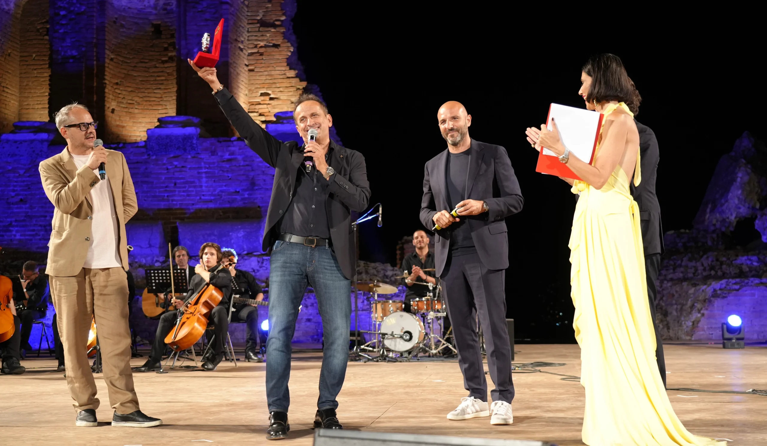 Il grande cinema europeo torna protagonista a Taormina: Luc Besson, Emir Kusturica e Terry Gilliam hanno ricevuto sabato sera il Nations Award alla carriera nella suggestiva cornice del Teatro Antico di Taormina. Besson, premiato dall’assessore regionale al Turismo Elvira Amata, torna nella “Perla dello Jonio” dopo circa 40 anni dal celebre film che giró qui: “Le grand bleu è ancora qui – ha detto – è strano, sembra che sia stato qui pochi anni fa, il profumo, le persone, è tutto perfetto”. E sui prossimi impegni non si sbilancia: “Come chiedere ad un cuoco in cucina cosa sta cucinando”. Sull’intelligenza artificiale applicata al cinema: “È come quando arrivò il colore, un nuovo strumento, dobbiamo usarlo noi in modo interessante”.